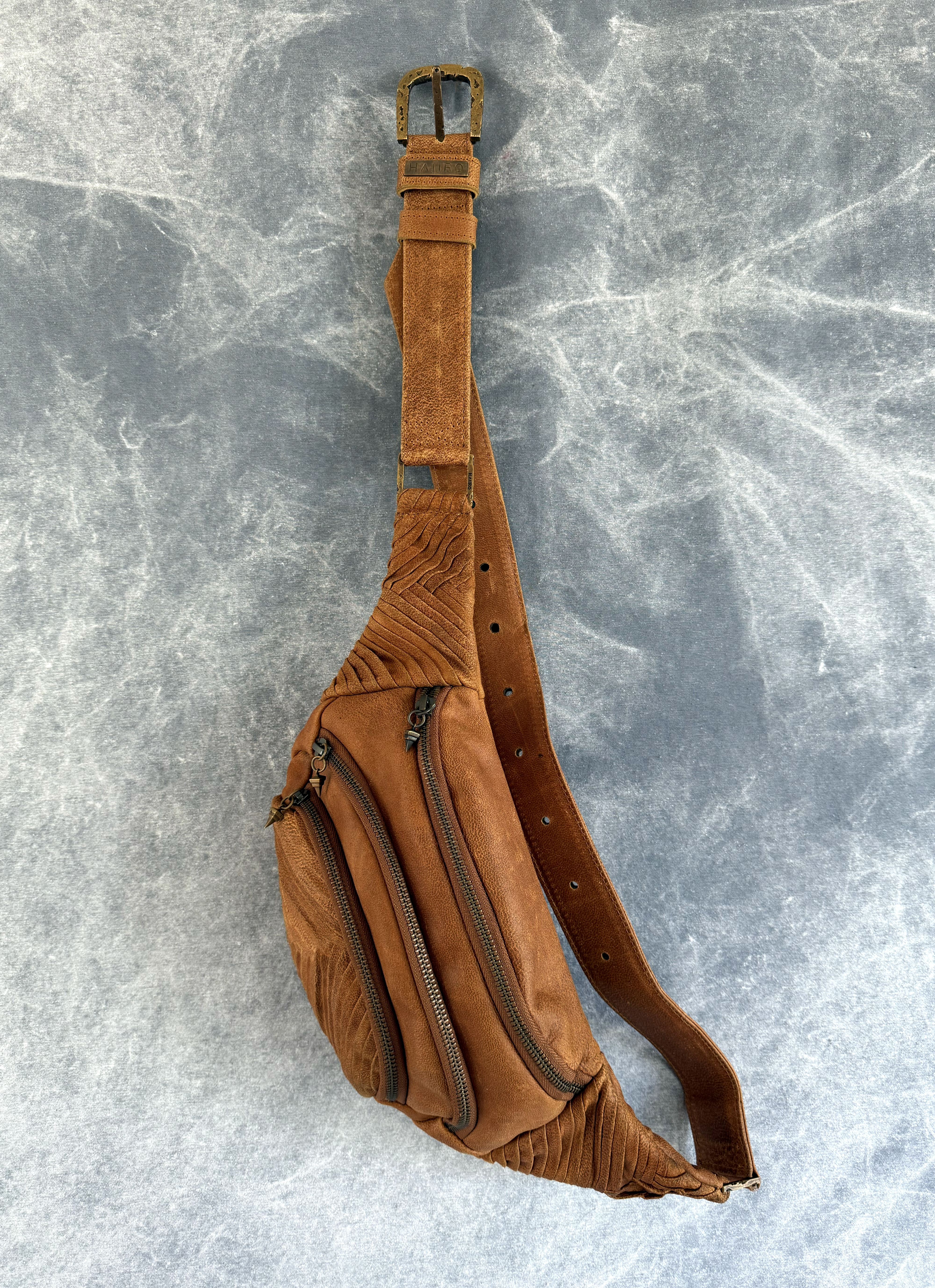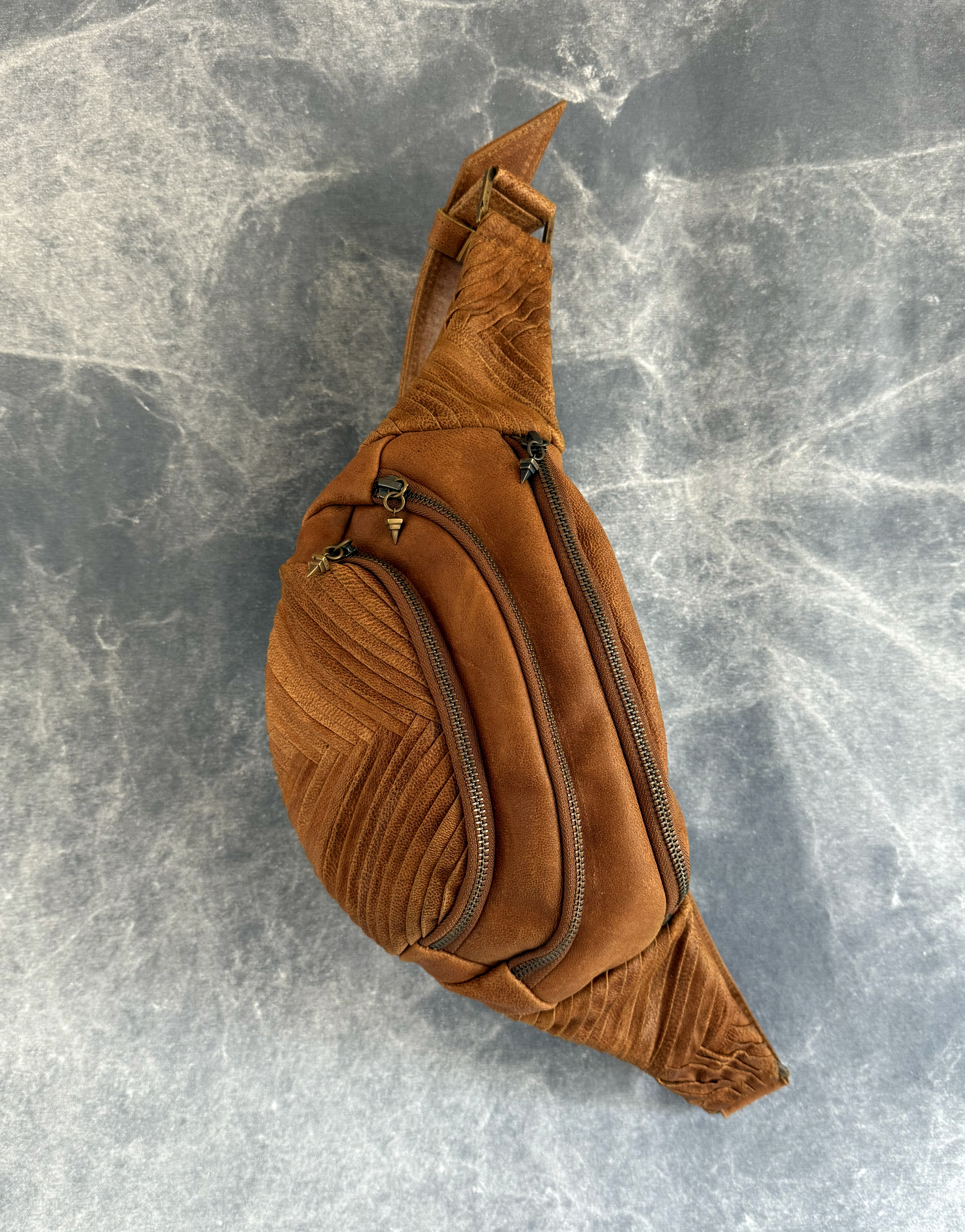 Handmade unisex fanny pack made from the most soft goat leather featuring a detailed design with custom hardware.