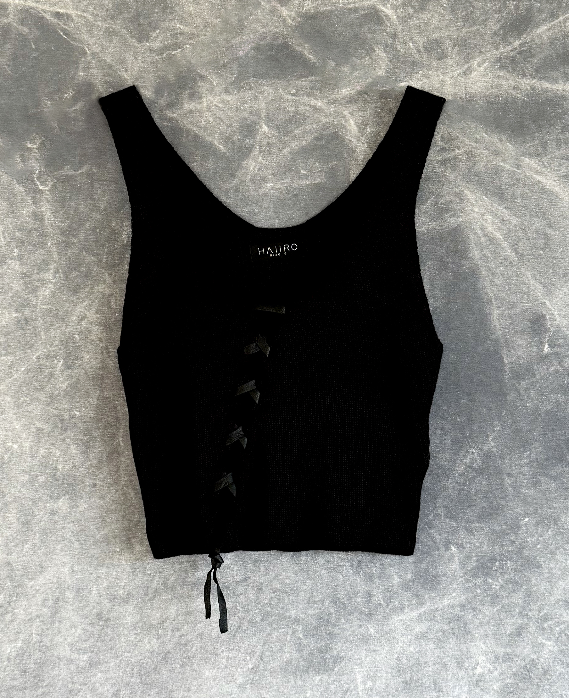 Handmade knit top made from a very soft cotton featuring a detailed leather design made from sheep skin.