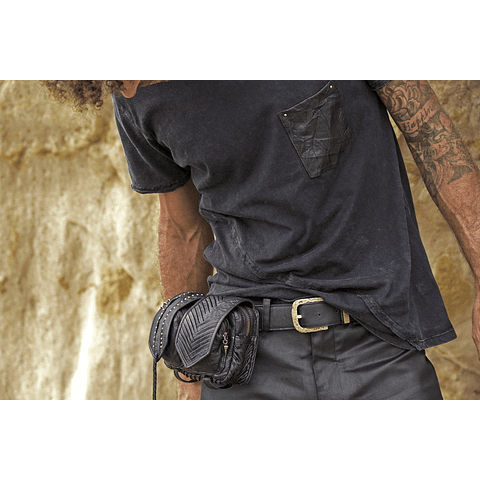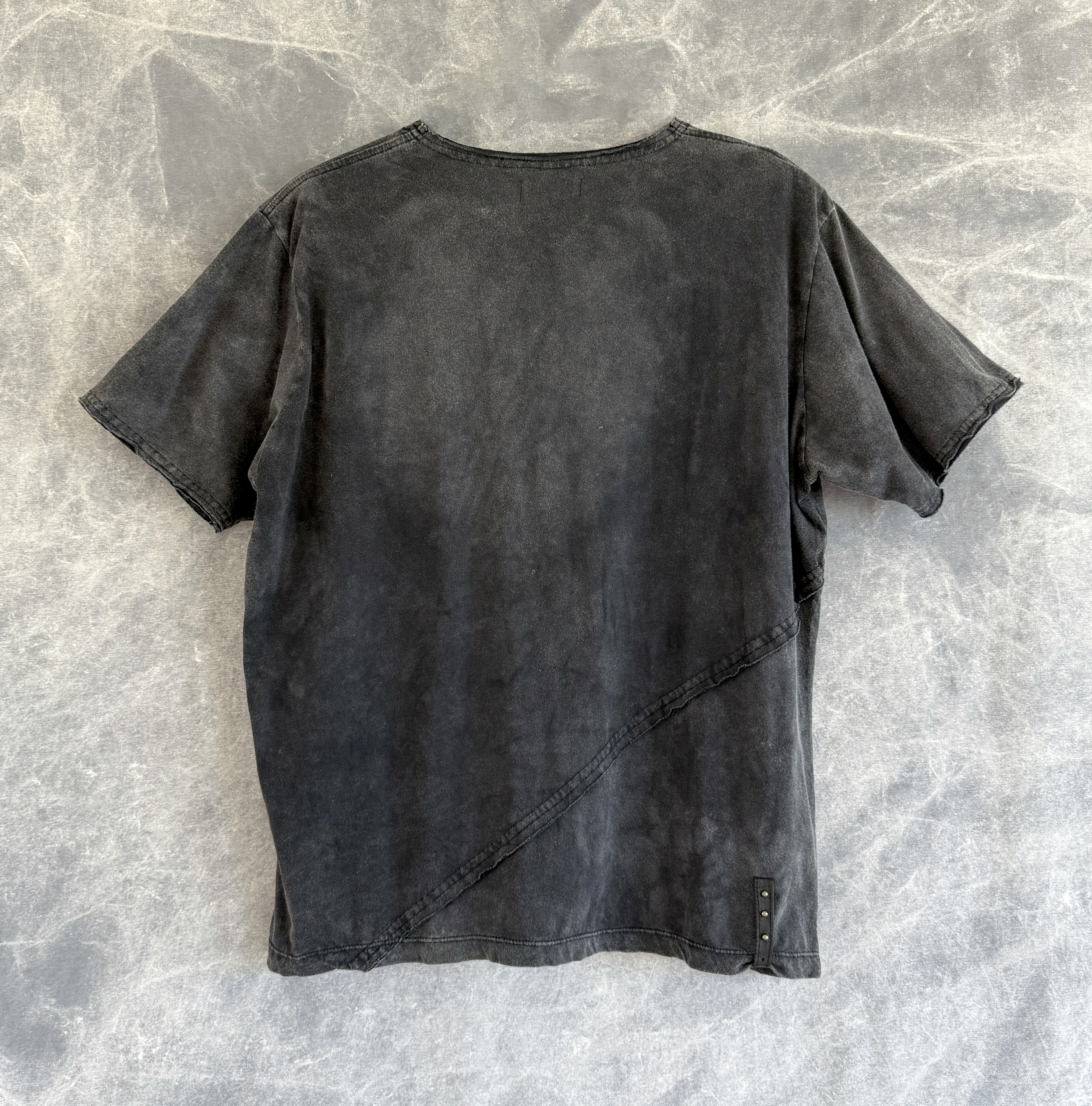 Handmade loose t-shirt made from a very soft cotton featuring a faux leather pocket.