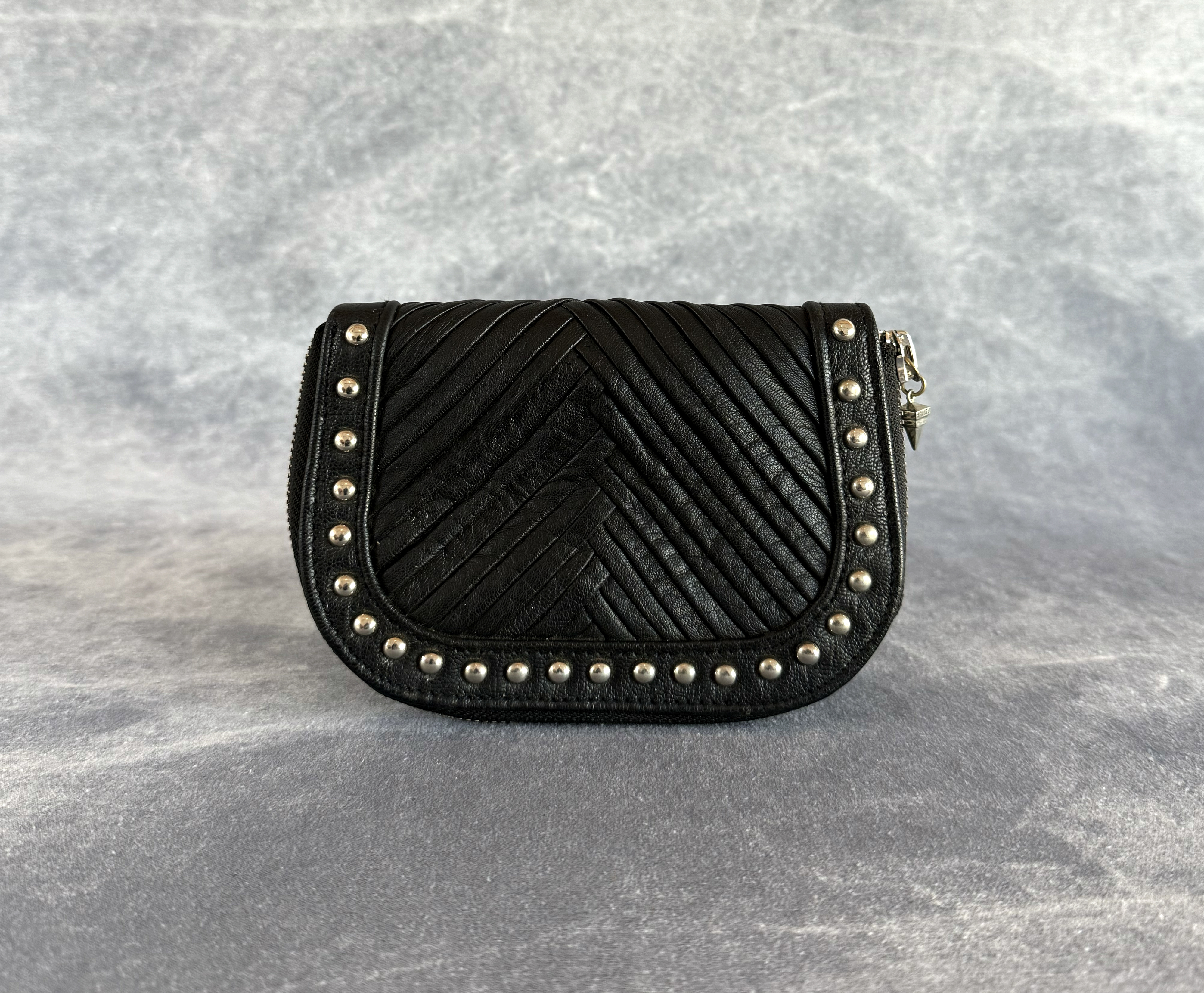 Handmade wallet made from goat leather featuring a detailed design with our custom zipper charm.